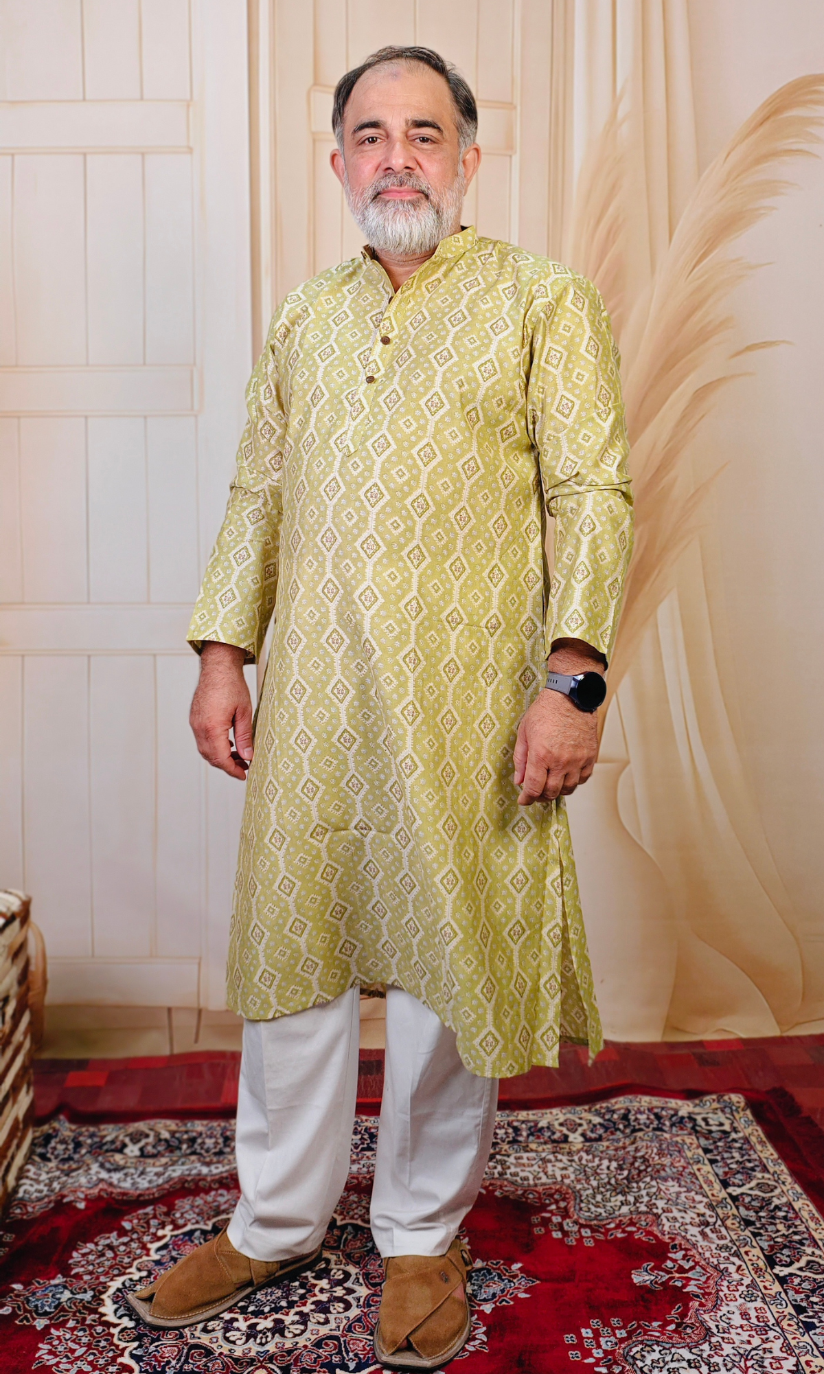 Elevate your ethnic wardrobe with this line-printed cotton kurta from Shades of Lilen....